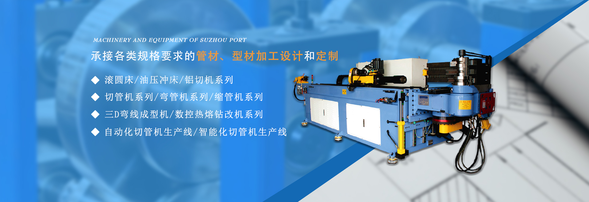 廈門蘇港機械設備有限公司位于風景優美的鷺島——廈門,公司是一家集科研、生產、銷售為一體的企業,嚴格的品質管理與完善的善后服務、合理的市場價格是我們力于競爭的前提。 精益求精當然出類拔萃,公司在原有的技術基礎上,不斷的引進國內外先進技術和管理辦法。專業制造系統金屬圓鋸機、DW系列單頭彎管機、SW系列雙頭彎管機、SG系列管端成型機、SG鋸片研磨機、YW系列龍門柱式壓管機、空心鉚接機、系列倒角機等八大類近五十個品種的各類管材、型材加工機械。